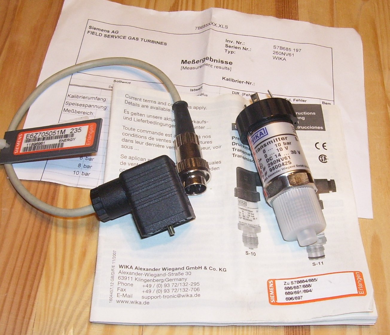Продам измерительные преобразователи давления WIKA S10, 0-10 bar,Uвх=14-30 V, Г вых= 0-10 V. В комплекте кабель с адаптером 30 см, 2 шт. Измерительный преобразователь давления WIKA S10, 0-60 bar,Uвх=14-30 V, Г вых= 0-10 V. В комплекте кабель с адаптером 30 см, 2 шт. Измерительный преобразователь давления WIKA S10, 0-160 bar,Uвх=14-30 V, Г вых= 0-10 V. В комплекте кабель с адаптером 30 см, 4 шт. Цена- 7500 руб/шт. В комплекте паспорта, калибровочные сертификаты. Все 2012 г/в, в работе не были. Контакты: 920-688-2060, Алексей.