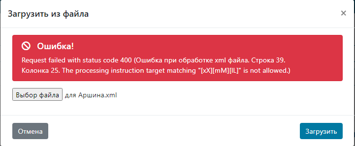 Доброе утро! Подскажите пожалуйста что не так? не дает загрузить файл, не пойму ничего. Аршин Манометры.xlsm для Аршина.xml -