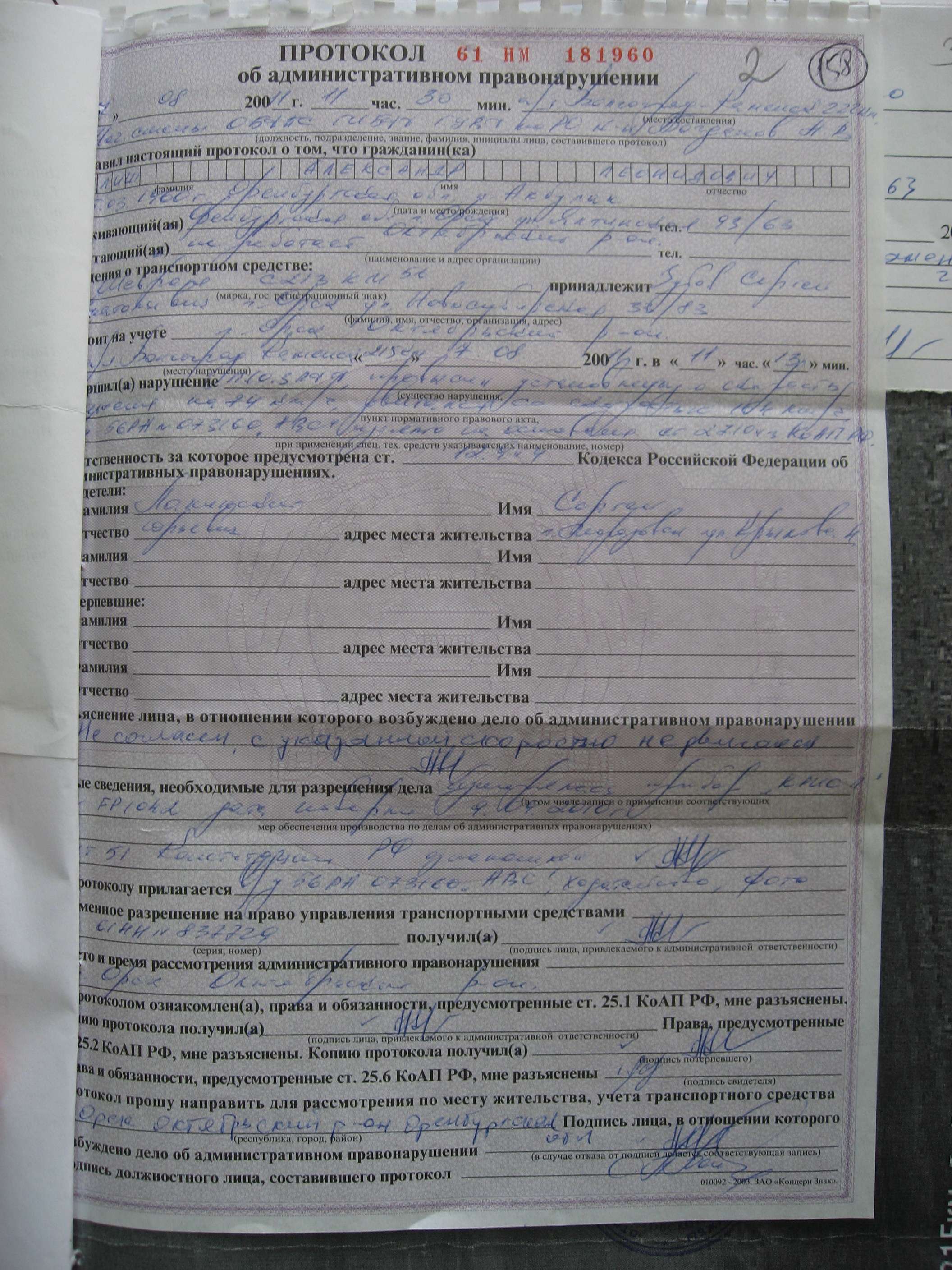 Конечно в протоколе я написал" с указанной скоростью не двигался" -