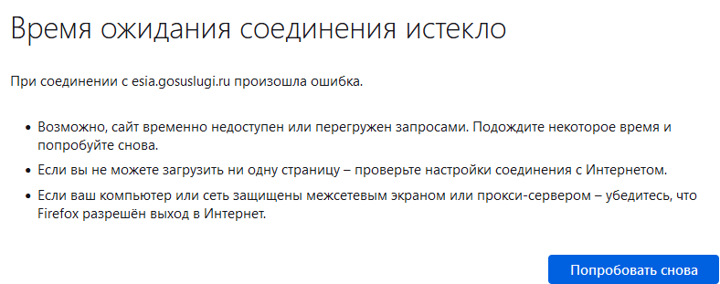 Добрый день! Вот уже второй день подряд не могу зайти в личный кабинет. Пытаюсь зайти как и всегда, после нажатия кнопки "войти в личный кабинет", появляется окно Госуслуг, где ставлю галочку "Нажимая, кнопку Продолжить, я соглашаюсь...". После того, как нажимаю Продолжить, крутятся две стрелки на белом экране, и появляется сообщение, что время ожидания соединения истекло. Подскажите, пожалуйста, в чем причина и что может помочь? -