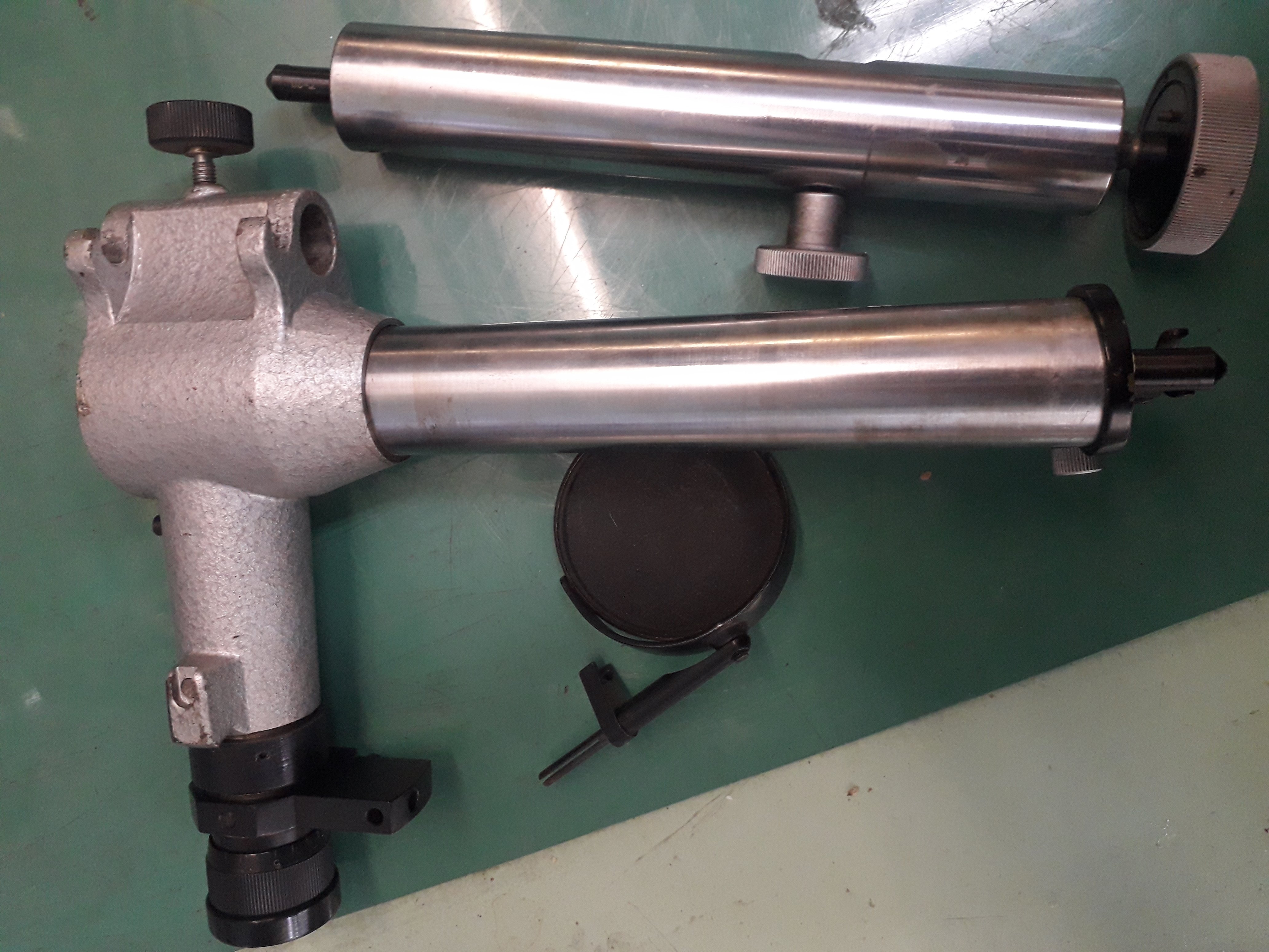 У меня два отдельных приспособления для ИЧ и для НИ с небольшими пределами измерений. Изготовлены из микрометров гладких, не такие громоздкие. Но тем не менее ранее проходили поверку. Сейчас выставлены на продажу. Это похоже тоже самодельное.