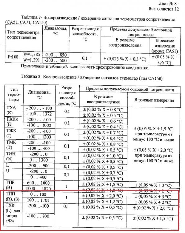 Добрый день! Такой вопрос, купили калибратор Yokogawa CA150_R, нужно расширить под него область аккредитации, единственный документ который есть на него, в приложении. Начала с диапазона измерения температуры, но не знаю, правильно ли я выбрала диапазоны и формулу для расчета погрешности (на картинке выделено в рамку)? В описании везде вижу, что он измеряет напряжение, силу тока, частоту, но не нахожу температуру, хотя табличка с диапазонами есть, может я что-то не правильно понимаю, может это другая характеристика, которая не подразумевает поверку соответствующих приборов? И будет ли отличаться свидетельство о поверке, если он прямиком из Японии? Помогите разобраться, на какие данные ориентироваться? YOKOGAWA паспорт с методикой.pdf