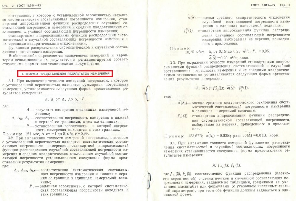 Все Вы видите правильно, но... не все хотите принять! Это как то однобоко. В форме представления результата присутствует не только числовое значение, но и показатели точности. Без них результат измерений ничтожен! Предположим, скажу Вам, что результат измерений 121 м/с (как в пункте 3.1). Ну и что? Вместо него может быть и 0 м/с и 300 тыс. км/с! Именно поэтому любое числовое значение результата должно было сопровождаться показателями точности - см.Формы представления результатов измерений. Числовое значение с показателями точности давало доверительные границы интервала. Хотите с этим поспорить? Это без меня!