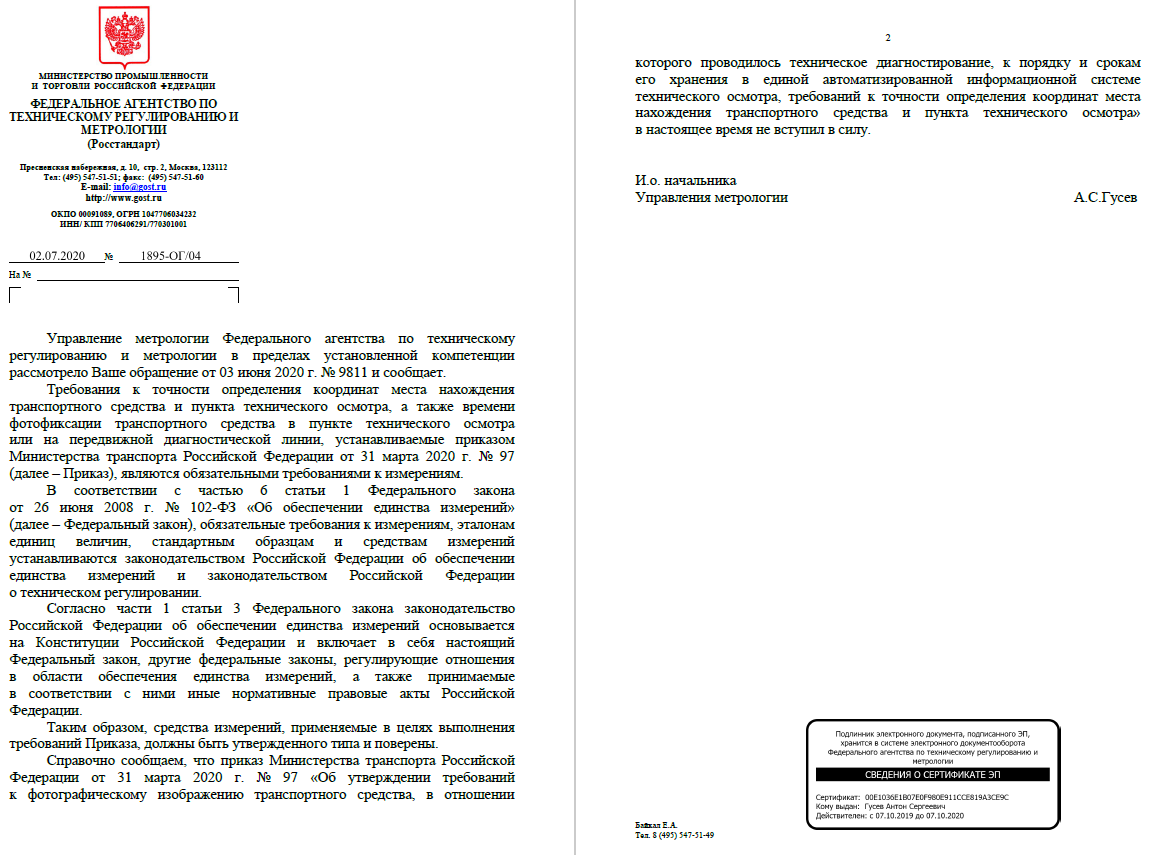 В Минтрансе не понимают, что у ГНСС нормируется инструментальная погрешность ? https://www.kommersant.ru/doc/4672061 а страховщики не понимают разницы между точностью (погрешностью) измерения координат и двумя независимыми измерениями в итоге что со всем этим делать, будут думать до сентября. Позиция Росстандарта на данный момент - измерения координат при фотофиксации ТС на ТО относятся к СГРОЕИ. Хотя возможно после прошедшего совещания верх возьмет целесообразность и Росстандарт передумает, результатом чего будет фикция с измерением координат "бытовыми" фотоаппаратами с GPS и/или планшетами/смартфонами без метрологической достоверности и защиты результатов