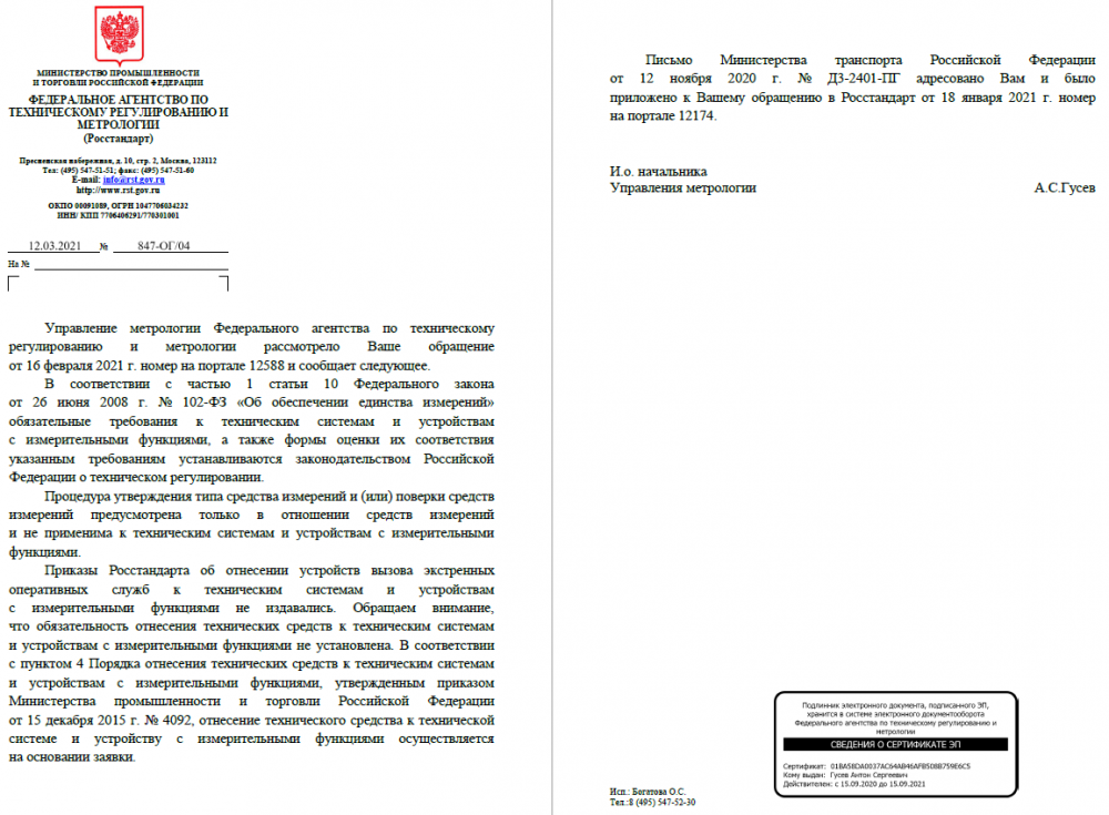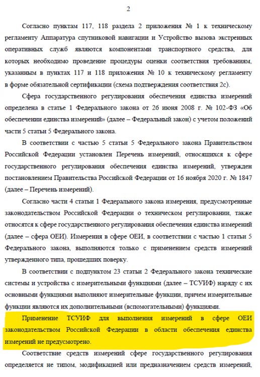 ПП РФ 1847 от 16.11.2020 определение координат системами (устройствами) вызова экстренных оперативных служб С(У)ВЭОС, устанавливаемыми на транспортные средства, отнесены к СГРОЕИ. Росстандарт считает их ТСУИФ, хотя ни одно устройство не отнесено к ТСУИФ. Таким образом измерения в СГРОЕИ проводятся непонятными показометрами. Упомянутое письмо Минтранса вопроса классификации С(У)ВЭОС в части средств измерения не касается, там речь идет о том что для ввозимых на Дальний Восток (в ДФО) единичных праворулек установлен мораторий на обязательность оснащения.