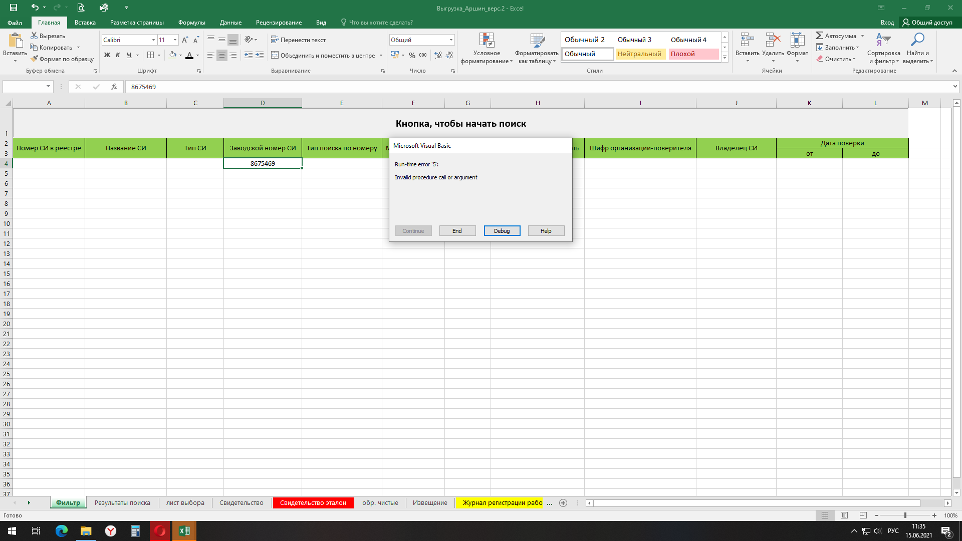 Хорошо, спасибо! Просто тот номер СИ что искала через файл, в самом Аршине нашелся. Вот и подумала что что-то сломалось. Буду пробовать позже еще. -
