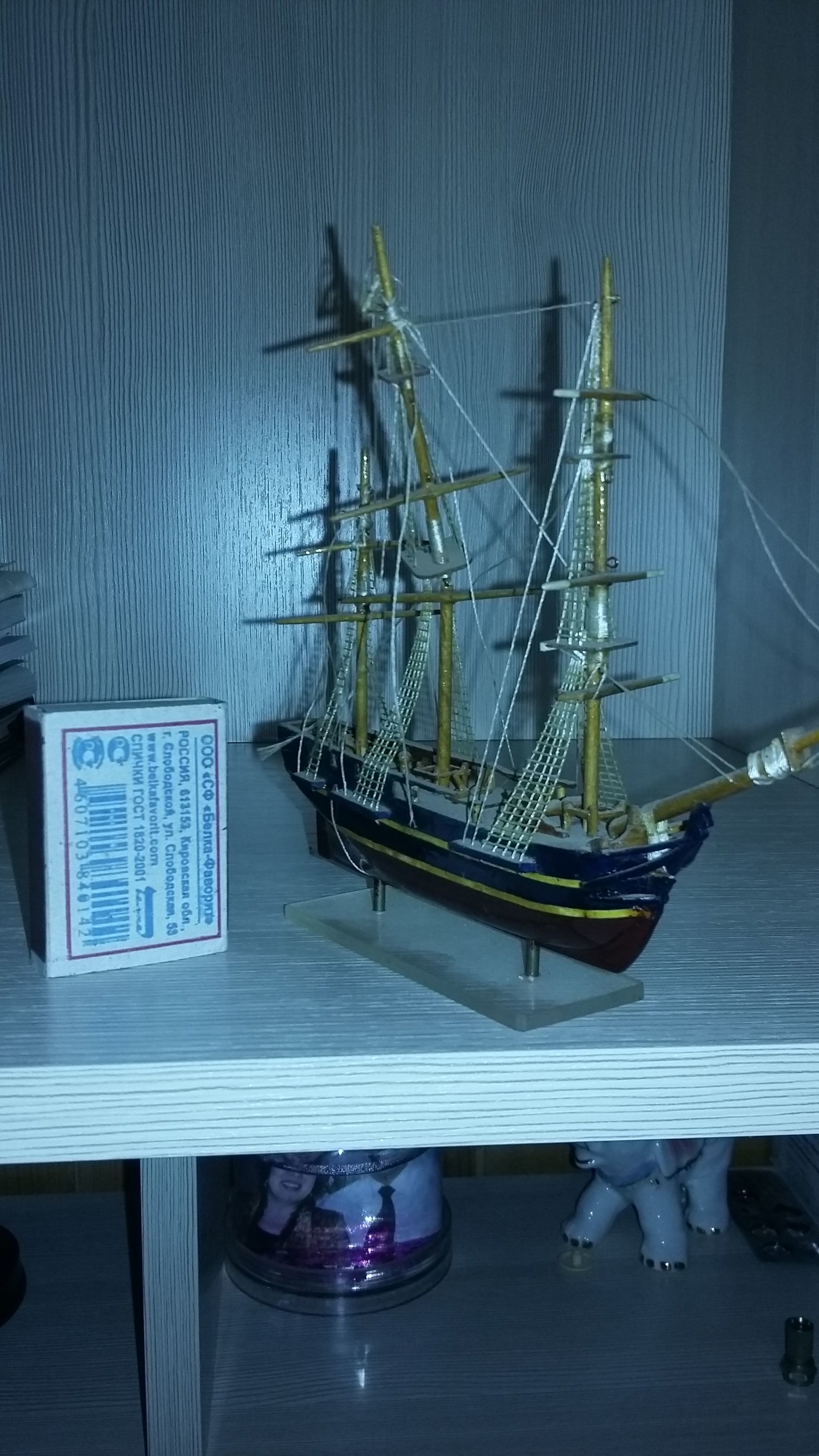 Увлекался в молодости судомоделизмом, учавствовал в соревнованиях. Как то в конце 1973 года взял палку и "выстругал" из неё модель "Баунти" для души. Стала талисманом по жизни. Была со мной везде, потрепали штормы (как и меня), потерялись пушки, шлюпка, реи и мачты подломились, но как и я "на плаву"