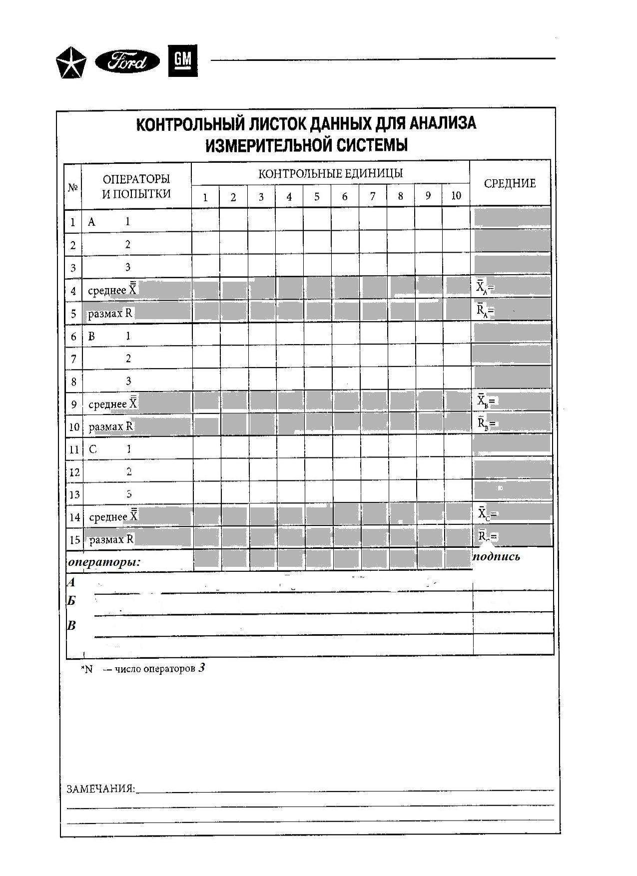 Ну, почему не знакомы, знакомы мы с GRR лет 20 знакомы! И в моей программе его нет, поскольку это должна быть другая программа, да и программа там не нужна это простой быстрый расчет вариабельности измерительной системы к допуску на процесс (продукт). Вариабельность измерительной системы R Не должна превышать 10% к полной допустимой изменчивости процесса. Метод размахов. На калькуляторе можно сделать. У меня даже картинка есть смотрите. Как выполняется анализ: 5 деталей, 7 контролёров измерят: Применяется для быстрого подтверждения того, что GRR (возможность измерительной системы) не изменилась и является приемлемой. Меня не надо аттестовать Анатолий, я прекрасно знаю предмет в отличии от вас, а потому разработала и реализовала более сотни программ SPC, MSA, FMEA... я давно на пенсии, и даже ИП теперь закрыла. Консультирую, координаты на сайте. Вас в политехе плохо учили и потому с вас двойная плата.
