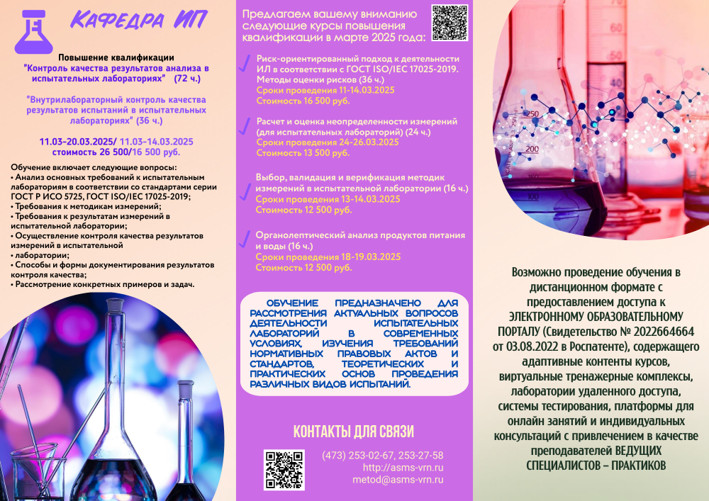 Добрый день! Предлагаем вашему вниманию направления обучения, реализуемые в Воронежском филиале АСМС в январе-феврале 2025 года. https://vk.com/wall-116121180_658 https://asms-vrn.ru/anons-kursov.php?clear_cache=Y Форма заявки приложена. Январь-февраль 2025_листок.pdf Заявка на обучение_2024.doc