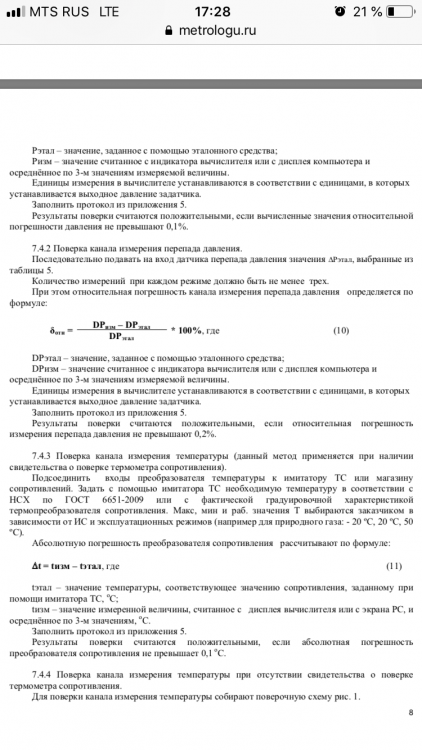 На узле учёта газа используется измерительный комплекса СуперФлоу-21В (номер в ФИФ ОЕИ 23120-12) в комплекте с диафрагмой. В методике поверке на комплекс, при поэлементной поверке каналов, указана относительная погрешность давления +/-0,1 % и относительная погрешность перепада давления +/-0,2 %. В описании типа на комплекс указана приведённая погрешность преобразователей давления +/-0,1 % и приведённая погрешность преобразователей перепада давления +/-0,1 %. Вопрос в том, чему верить, описанию типа или методике поверки?