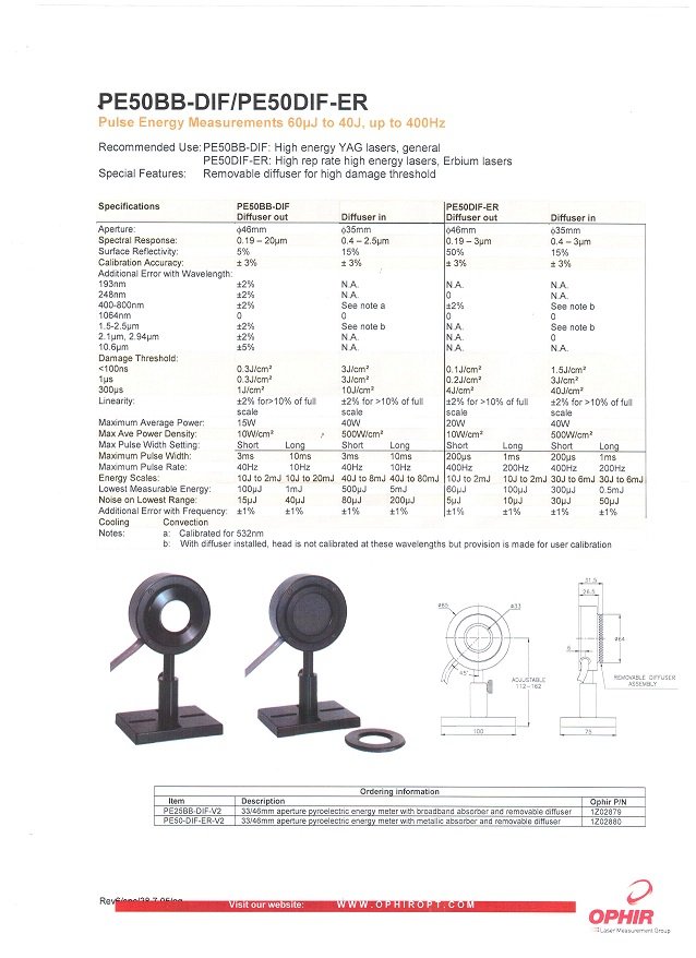 Продам пироэлектрические измерители лазеров Ophir PE-50-DIV-ER-V2-SH