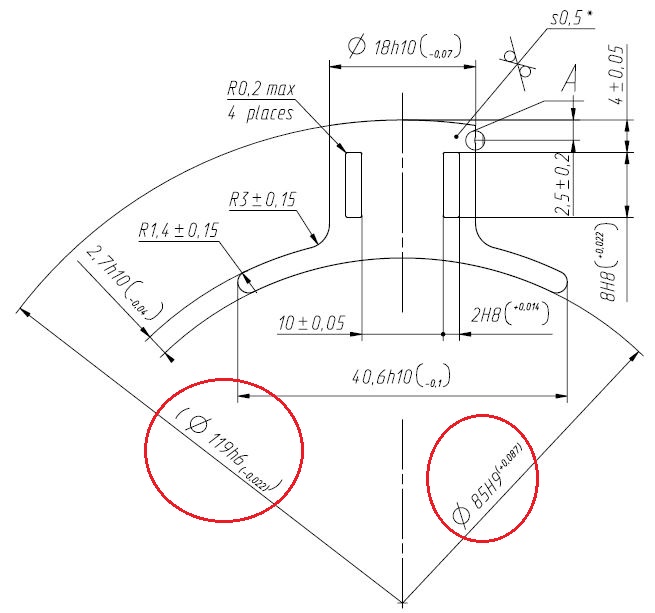 Всем привет! Ситуация следующая. Требуется измерить диаметр на листе полюса (на чертеже отмечено). Загвоздка в том, что номинал диаметра большой, а сектор для измерения короткий. Из оборудования имеется ВИМ и КИМ. Вот сколько раз строю сектор, то вот и столько же разных значений получается на одной и той же детали, и при этом диаметр всегда показывает больше чем номинал. Я понимаю, что для измерения диаметра/радиуса нужен сектор больше, так как для оборудования такое маленькое скругление=прямой участок, и оно само достраивает окружность по каким-то своим соображениям. Соответственно есть несколько вопросов: 1) Может вам на глаза попадался документ, в котором прописано, каким должен быть минимальный сектор для построения окружности при измерении диаметра и радиуса на КИМ и ВИМ, как маленького так и большого размера? 2) На каком оборудовании вообще можно с такой точностью измерить данные диаметры при таком маленьком секторе (шаблоны не предлагать, так как их тоже нужно контролировать)? 3) Вот вам принесли такое на измерение, вы бы взяли в работу? Если нет, то с какой формулировкой вернули бы обратно это конструктору? Спасибо)))