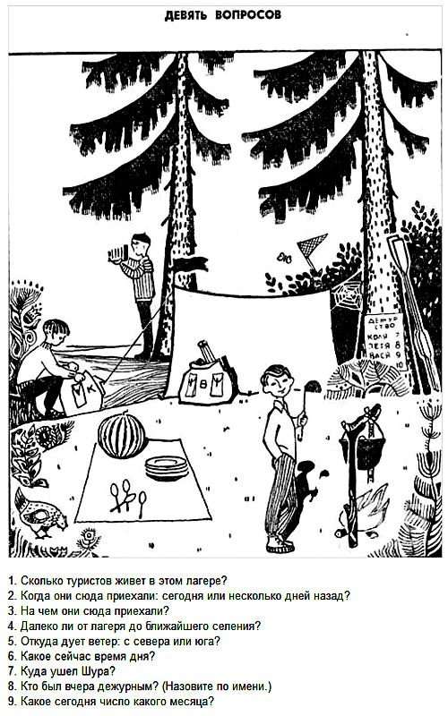 Специалисты su215 658 Опубликовано 18 Марта 2012 Специалисты Жалоба Опубликовано 18 Марта 2012 1. 4 2. несколько 3. на лодке 4. близко 5. показалось, что с запада 6. полдень 7. ловить бабочек 8. Коля 9. 8 августа 2. Два дня назад, судя по расписанию дежурств. 5. С юга. На деревьях меньше веток со стороны севера, а пламя костра отклоняется в эту сторону, значит ветер южный. 6. Утро. Солнце светит с востока (по тени от Пети). PS. Ramil, спасибо! Вспомнил пионерское детство. Цитата