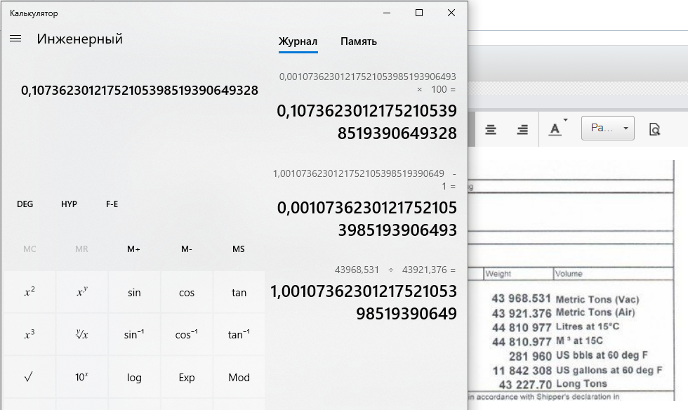 Влдмир 105 Опубликовано 11 Сентября 2019 Жалоба Опубликовано 11 Сентября 2019 Знаменитый документ. Здесь Metric Tons(Vac) и Metric Tons(Air) отличаются на 0,1073 % У нас речь идет о 0,15%. Это чем можно объяснить? Цитата